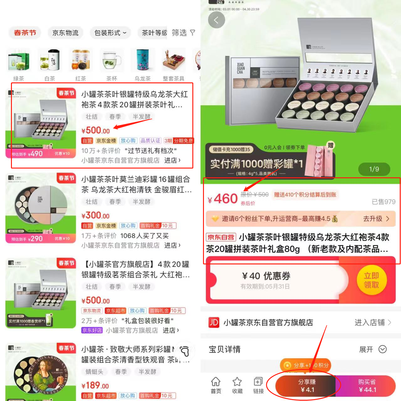 买小罐茶上京东有保障,京东500元一套的小罐茶,通过高省APP可以立省40元,高省APP能找到京东所有商品的内部优惠券,还有4.4的佣金返利回来,通过高省APP不仅自己购买省钱,还能推荐给别人赚一部分佣金!这是一个很好的省钱,赚钱的APP!!