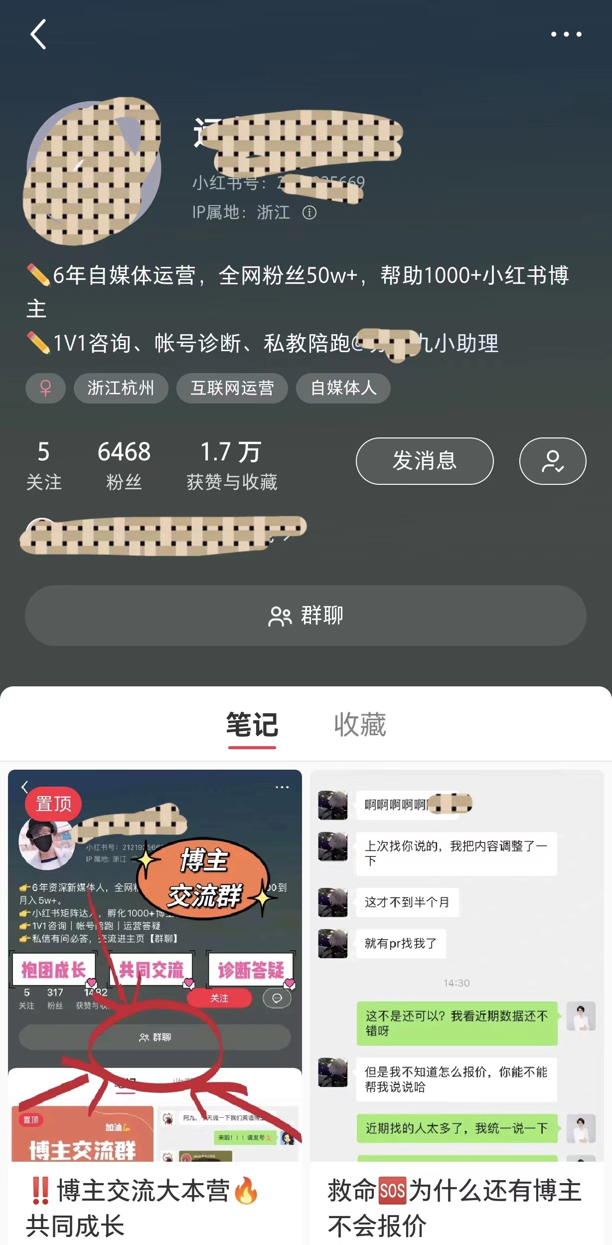 可以置顶一篇引流笔记(发布超过20条笔记就可以置顶),我目前置顶的是一篇关于打卡的群,我把群二维码马赛克,但是露出来群名字跟头像。上面文字告诉他们,可以进群打卡,很多人就会在下面评论,然后就可以用上面评论区引流的方法进行引流。我放一张其他人的给大家看一下。